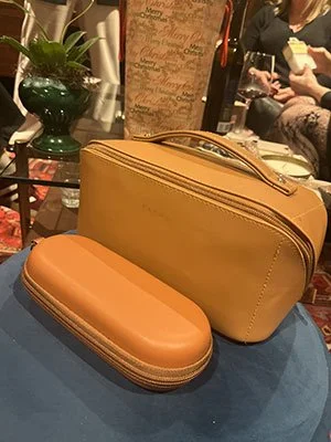 Travel makeup bag from Eachy + glasses case - This gorgeous duo came from Heather, and Emily was so, so happy to unwrap it. The glasses case contains one side for sunglasses and another for readers!